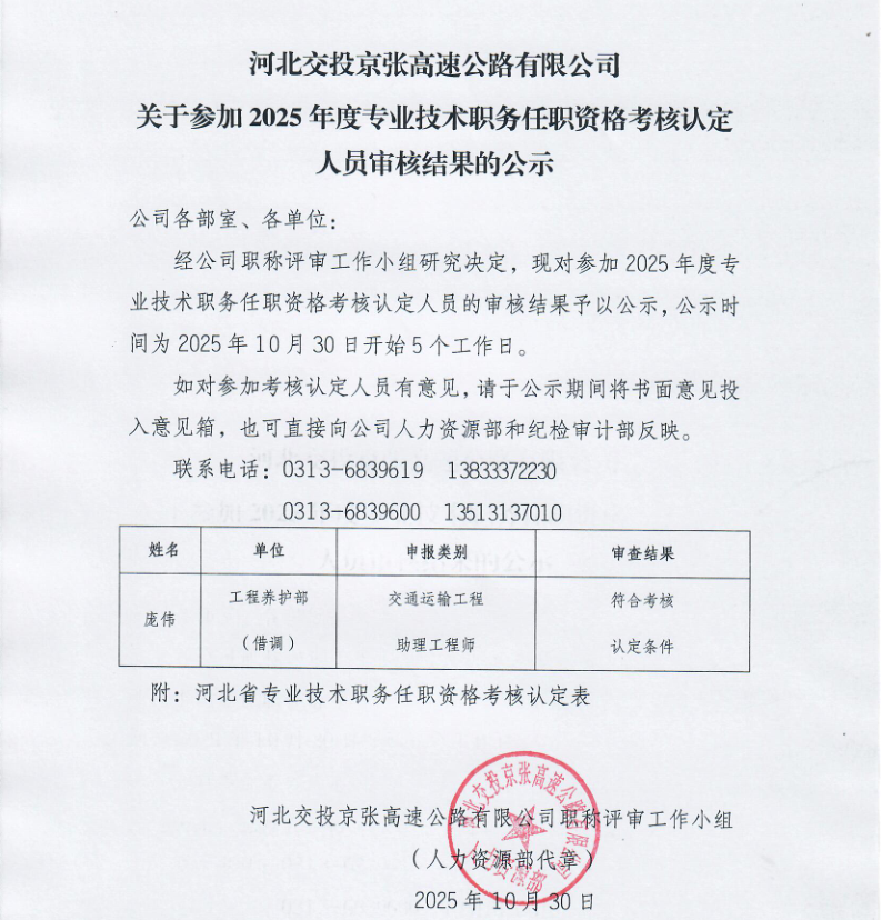 關(guān)于參加2025年度專業(yè)技術(shù)職務任職資格考核認定人員審核結(jié)果的公示