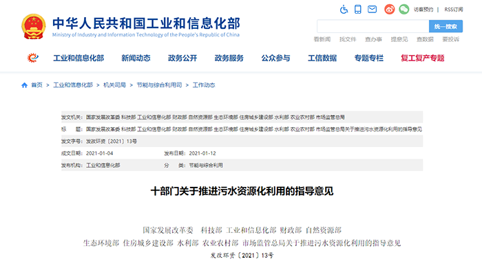 近日,國(guó)家發(fā)展改革委聯(lián)合科技部、工業(yè)和信息化部、財(cái)政部、自然資源部、生態(tài)環(huán)境部等十部門(mén)共同印發(fā)了《關(guān)于推進(jìn)污水資源化利用的指導(dǎo)意見(jiàn)》(以下簡(jiǎn)稱(chēng)《指導(dǎo)意見(jiàn)》),對(duì)全面推進(jìn)污水資源化利用進(jìn)行了部署。