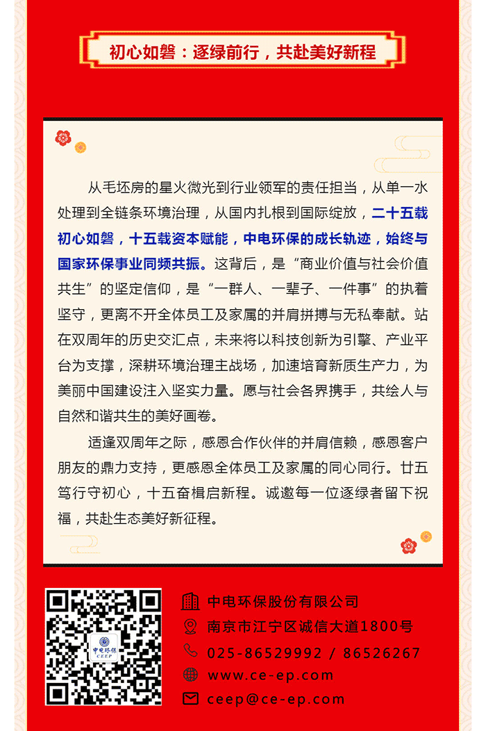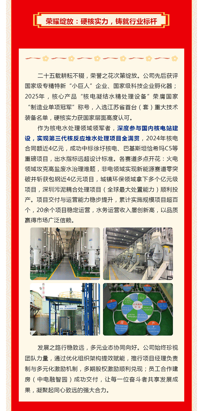 中電環(huán)保股份有限公司是南京市首家環(huán)保上市公司(股票簡稱:中電環(huán)保,股票代碼:300172),南京環(huán)保產(chǎn)業(yè)協(xié)會會長單位,國家級聯(lián)盟理事長單位,是生態(tài)環(huán)境治理服務商,主營(3+1):水務、固危廢、煙氣治理及產(chǎn)業(yè)創(chuàng)新平臺,包括:工業(yè)水處理、污水處理及水環(huán)境綜合治理;固危廢土壤、污泥餐廚垃圾處理;煙氣及VOCS治理;智慧環(huán)保;高端裝備等。